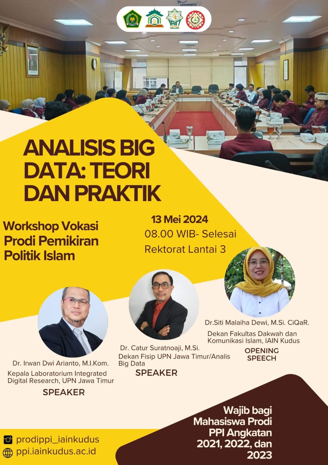 Studi kasus riil untuk memahami tantangan dan solusi analisis data skala besar Praktik langsung (hands-on) berbasis proyek Workshop ini cocok diikuti oleh dosen, mahasiswa, praktisi, ASN, dan siapa pun yang ingin meningkatkan kapasitas analitiknya di era transformasi digital. Dengan pendekatan interaktif, peserta tidak hanya memahami teori, tetapi juga mampu mengimplementasikan analisis big data dalam konteks kerja nyata.